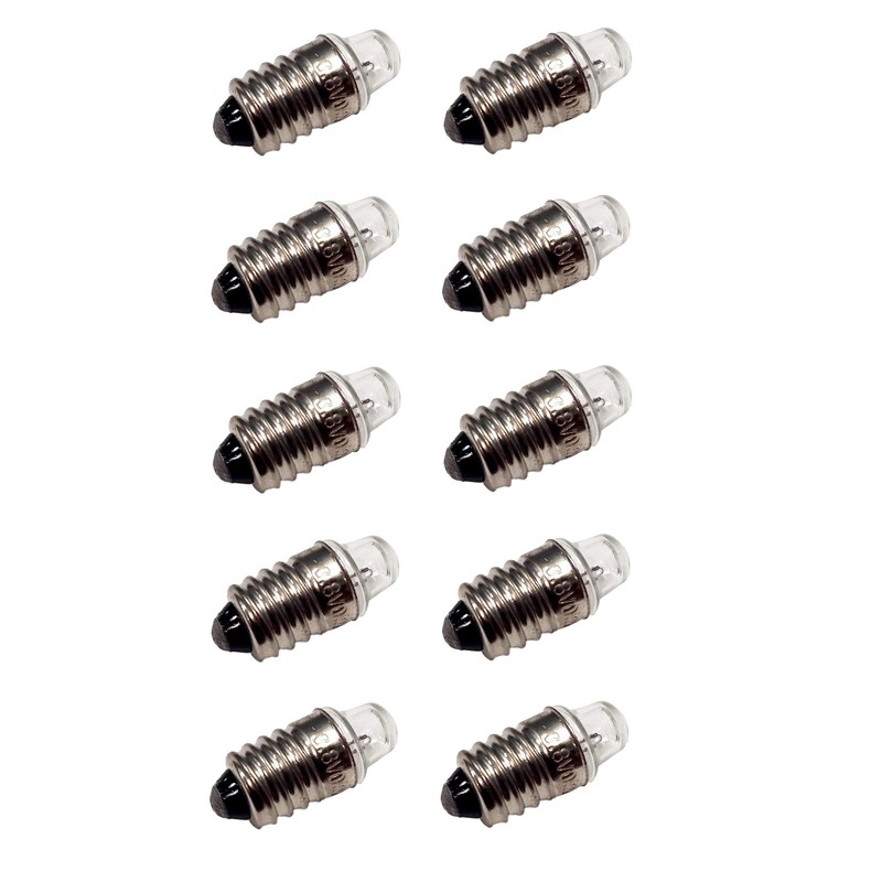 Pack of 10 E10 Miniature Screw Base Light Bulbs, 3.8V / 0.2A Flashlight Style, Incandescent