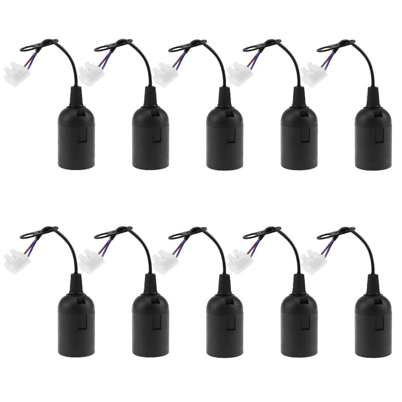 Pack of 10 E27 Replacement Socket 4 A 250 V Lamp Holder with Cable (Max. 60 W) Black Renovation Socket Construction Site Socket