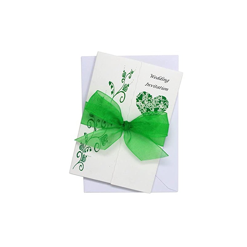 Pack of 10 Green Wedding Invitations with ribbon and envelopes- Gatefold style!