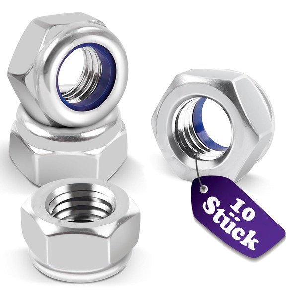 Pack of 10 Hex Nuts M10, Locking Nuts Stainless Steel Standard A2 - V2A Rustproof - Stop Nuts - Self-Locking Nuts - Clamping Nuts Screw Nut