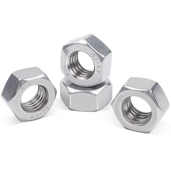 - High-quality material: hex nut made of durable stainless steel A2 V2A 304, hexagonal nuts surface is smooth with metallic shine which has good corrosion, rust and oxidation resistance. It can also be used indoors, outdoors and in damp areas.