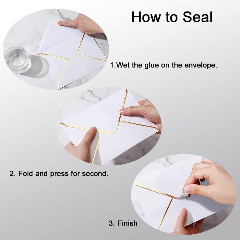 - HOW TO SEAL Please note that our envelopes do not come with pre-applied double sided tape, so please prepare your own double sided tape or glue when you use them. Will be ready double-sided tape or glue along the envelope seal position, and then tear off the adhesive paper or wait for the glue to dry after it can be, adhesive method is very easy