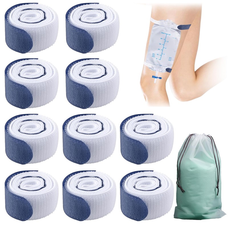 - Comfort and stability: you will receive 10 catheter attachment strap straps and a practical storage bag. This catheter attachment strap does not restrict the patient in his freedom of movement and there is enough space for comfortable changing and use. Its unique non-slip design effectively prevents the leg bag from slipping or rubbing on the skin, and is particularly suitable for incontinence patients who need to use it for a longer period of time.