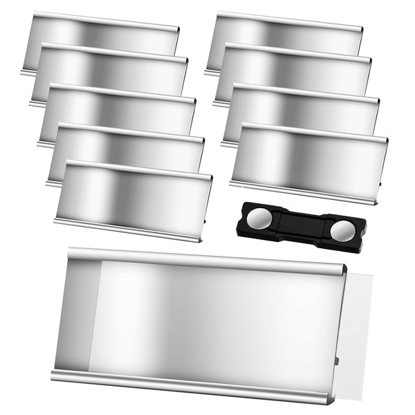 Pack of 10 Name Badges for Clothes Magnet, Aluminium Name Badges with Strong Double Magnet, Professional Magnet Name Plate with Paper Slot, Approx. 72 x 35 mm (2.8 x 1.4 Inches) (Silver)