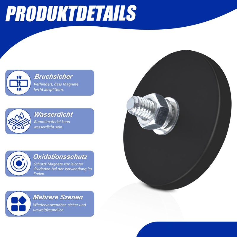 - Easy installation: the screwed magnets with hole are equipped with screws, washers and nuts in the middle to tighten the magnets. Use the nuts to securely connect the rubber magnets to the hardware components. Non-slip, robust, rubber-coated magnets strong magnet with thread are ideal for outdoor camera mounts, off-road LED light bar brackets and automation devices.