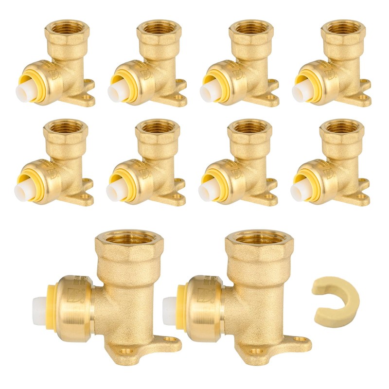 - Package Include: 10 pack 1/2 Inch Push Fit x 1/2 Inch FNPT Female Drop Ear Elbow and 1 disconnect clip. Fits copper, CPVC, PE-RT, and PEX pipes
