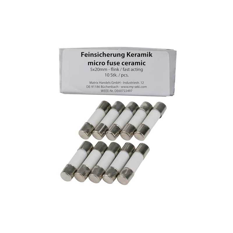 Pack of 10 SeKi Ceramic Fuses 2.5 A, 5 x 20 mm, Quick, Glass Fuse Fine Fuse 250 V