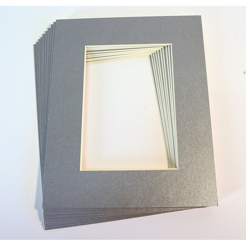 Pack of 10 SILVER 8x10 Picture Mats Matting with White Core Bevel Cut for 5x7 Pictures