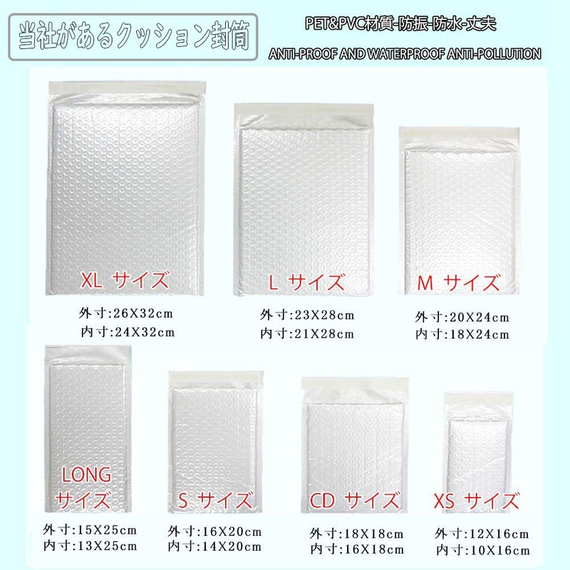 - Material: The surface is made of PE polyethylene, not paper, so it is difficult to tear and does not get wet even in the rain. The interior is equipped with a foam air cap to reduce the external impact force. As shipping envelopes, they are not only durable but also very safe