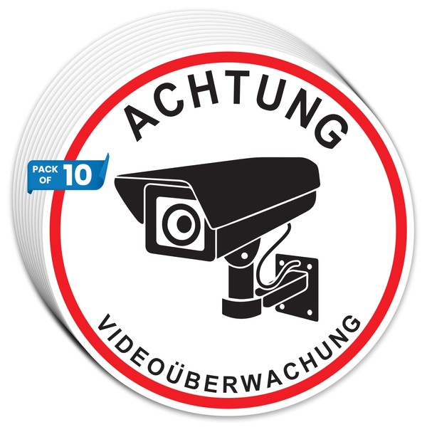 Pack of 10 Stickers Video Surveillance Sign Diameter 14 cm