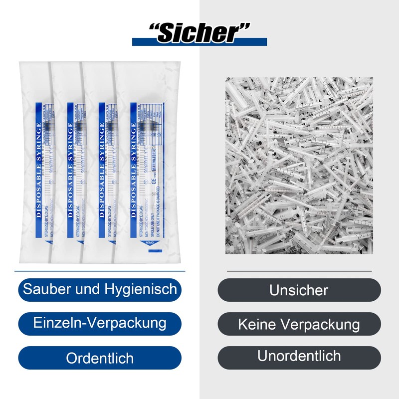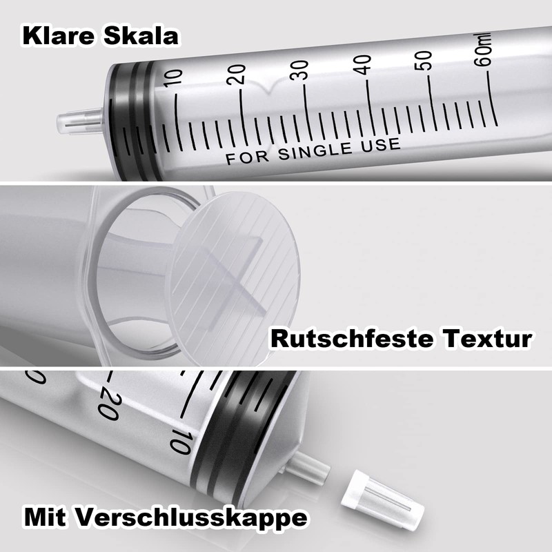 - Contents: 10 x 60 ml dosing syringe. Plastic syringe made of PET and printed scale as well as transparent cylinder, latex-free and silicone-free, safe in blister packaging.