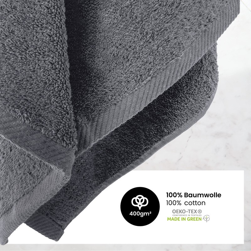 - Quality: the high-quality towel set made from 100% certified cotton, "Made in Green", is particularly skin-friendly, fluffy soft, absorbent and durable.