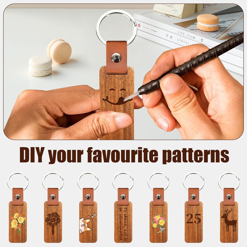 - Customisation: our key ring wooden blanks allows you to unleash your creativity by laser engraving, colouring and carving to make each piece unique and beautiful. Enjoy the fun of DIY and improve your craft skills and creativity to make unique wooden key rings.