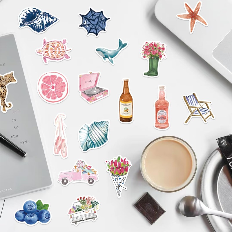 - ✔ Pack of 100 Unique Designs: Get 100 high quality vinyl stickers (approx. 5-7 cm). Each sticker features an enchanting summer watercolour design with cute cartoon motifs - no repetitions, full creativity for your project!