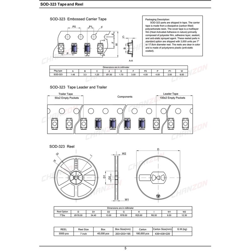 (Pack of 100) Chanzon 1N4148WS SMD Small Signal Quick Switch Diodes High Speed 150mA 75V SOD-323 (SC-76) IN4148WS 150mA 75V (Marking T4)
