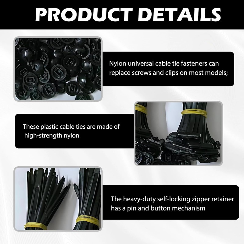- ★ The cable ties made of high-strength, UV-resistant nylon can withstand harsh conditions such as rain, heat, dirt and vibration while being corrosion and wear-resistant for long-lasting indoor and outdoor use.