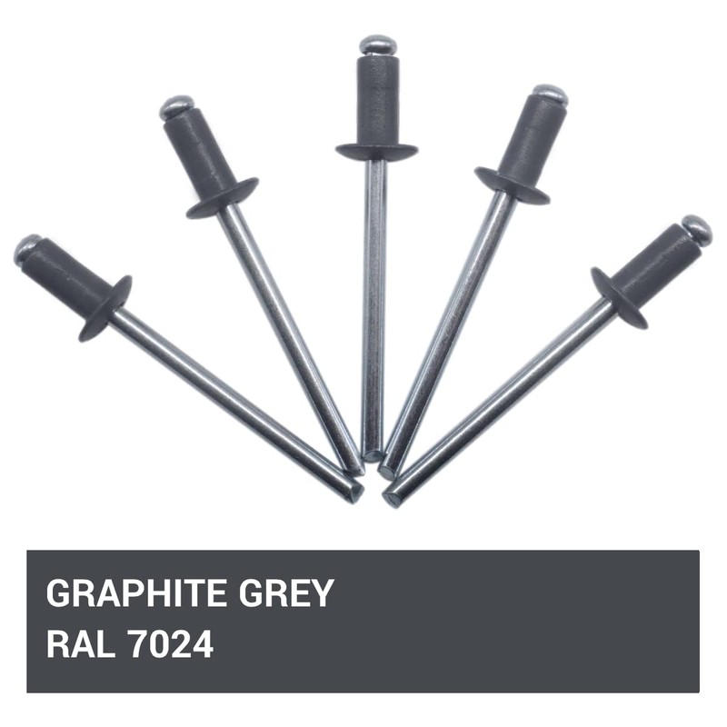 - ✔️ Packaging: pack of 100 blind rivets, size: 3.2 x 8 mm, aluminium body and steel mandrel DIN 7337 standard, colour: graphite grey (RAL 7024)