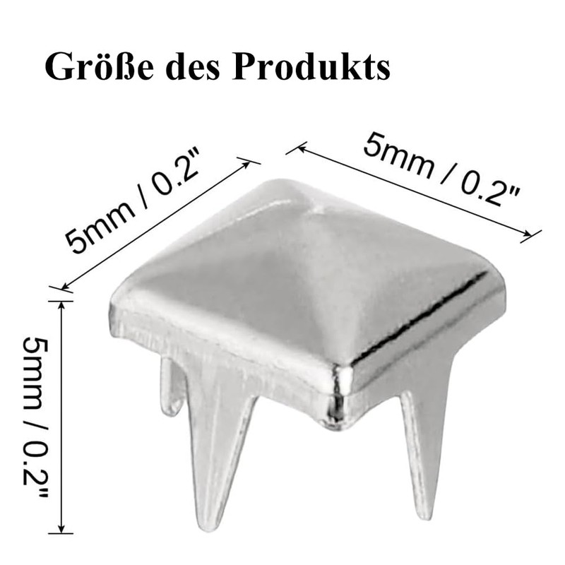 Pack of 100 Square Rivets Metal, 6 mm Metal Rivets, Pyramid Spike Rivets, DIY Leather Punk Rivets for Bags, Clothes, Shoes (Silver)