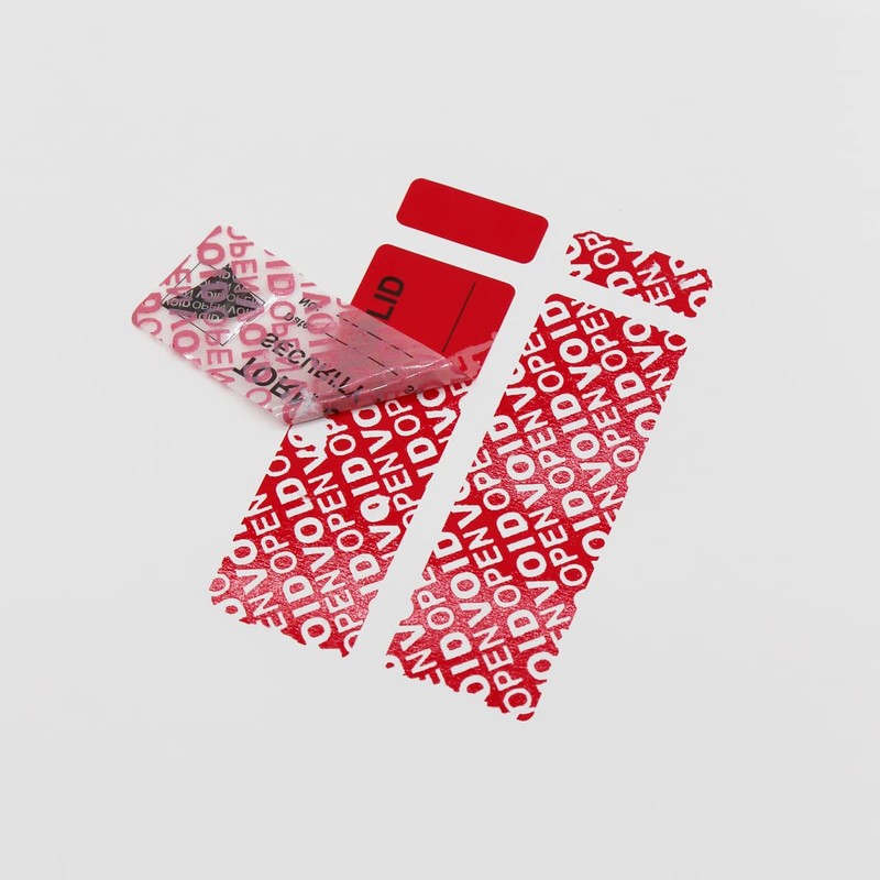 The tape is attached to the adhesive end, such as opened or torn off and shows the image separates preset patterns or text. The adhesive surfaces and attachment to the surface will have obvious structural damage, such as: the word VOID, unsealed, the real thing to achieve the purpose of fidelity, and provides an automatic test feature with a damaged mortgage, a loss that is now, a look, and authenticity characteristics of non-reusable.