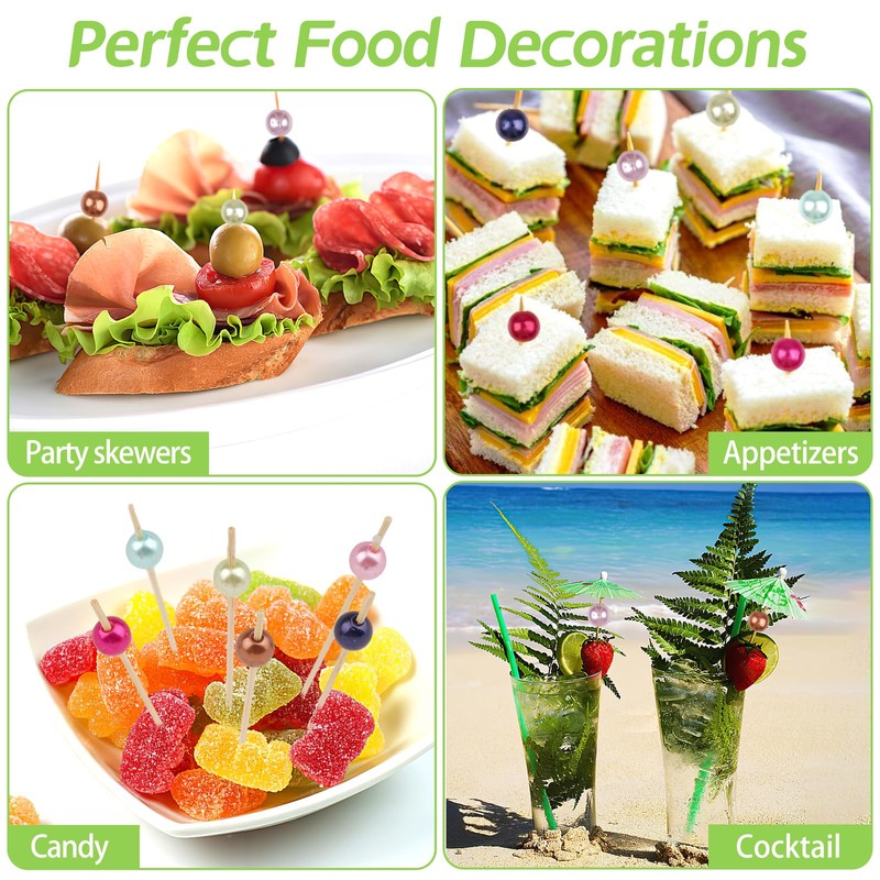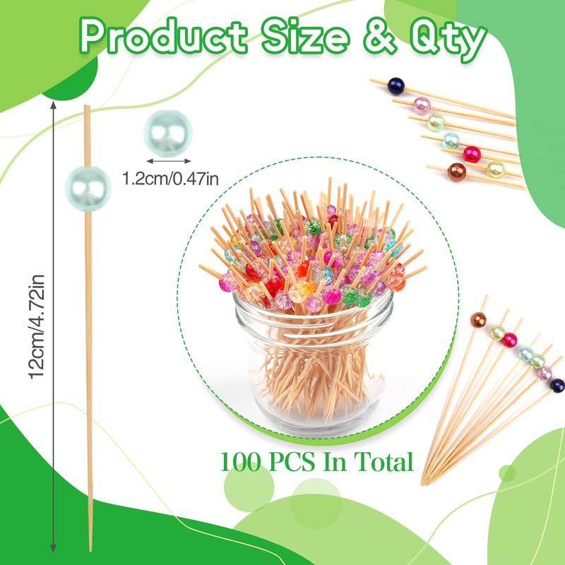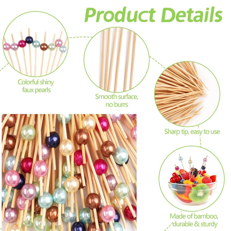 - Safe and durable: these cocktail skewers are made of natural and environmentally friendly bamboo with mixed coloured pearl end, which ensures their durability and longer use. The surface of the cocktail stick is smooth, so you don't have to worry about hurting your hands when using.