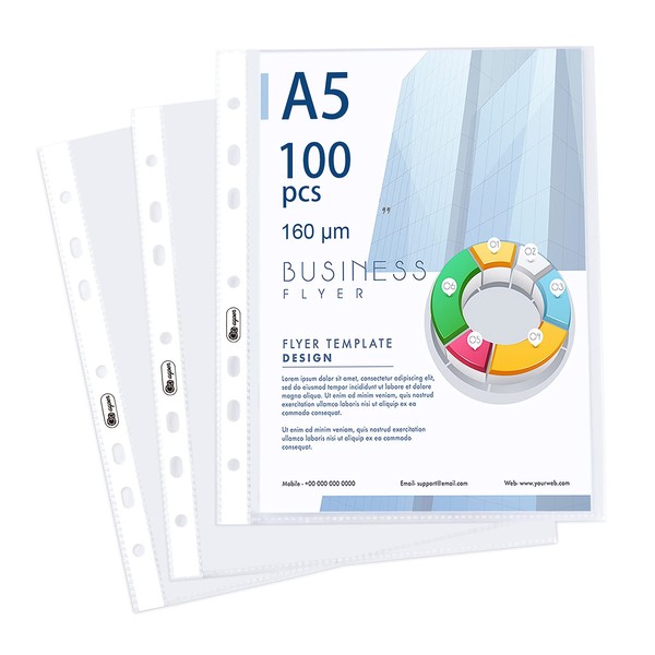 Pack of 100 Transparent Document Wallets DIN A5, Extra Strong 160µ Polypropylene Plastic Document Wallets for Protection of Paper, Files and Documents