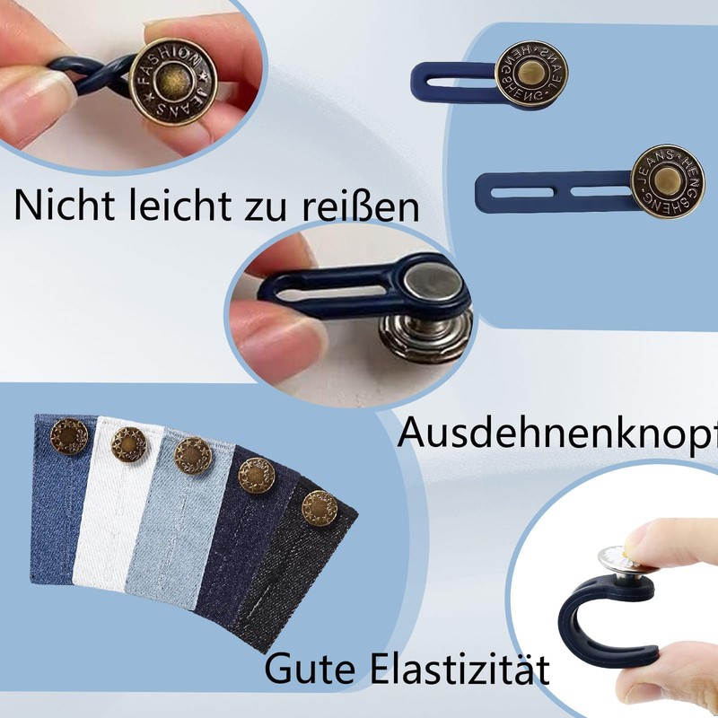 - Package includes: you will receive 5 pieces large denim waist extensions for trousers, in the size 83 x 35 mm. Pack of 3 small button extensions, in size 3.5 cm x 1.7 cm. 3 pieces large button extensions, in size 5.3 x 1.5 cm, total 11 pieces, which easily match your shirt skirt or jeans.