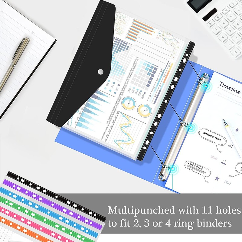 The 11 hole design A4 clear pockets allows for easy storage of document folder, the 11 hole position fits into standard 2/3/4 hole folders.