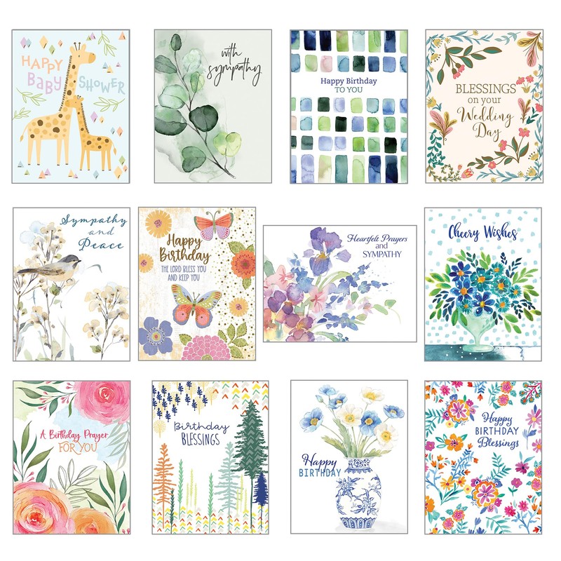 Pack of 12 Assorted “Simple Blessings” All Occasion Greeting Cards with scripture