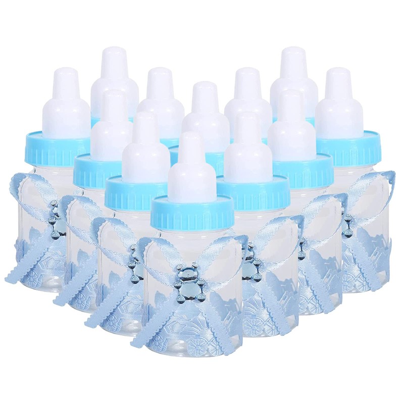Pack of 12 Candy Bottles, Baby Gift Candy Bottle, Baby Christening Box Decoration for Baby Shower Party Gift Package Pink 9 x 4 cm (Blue)