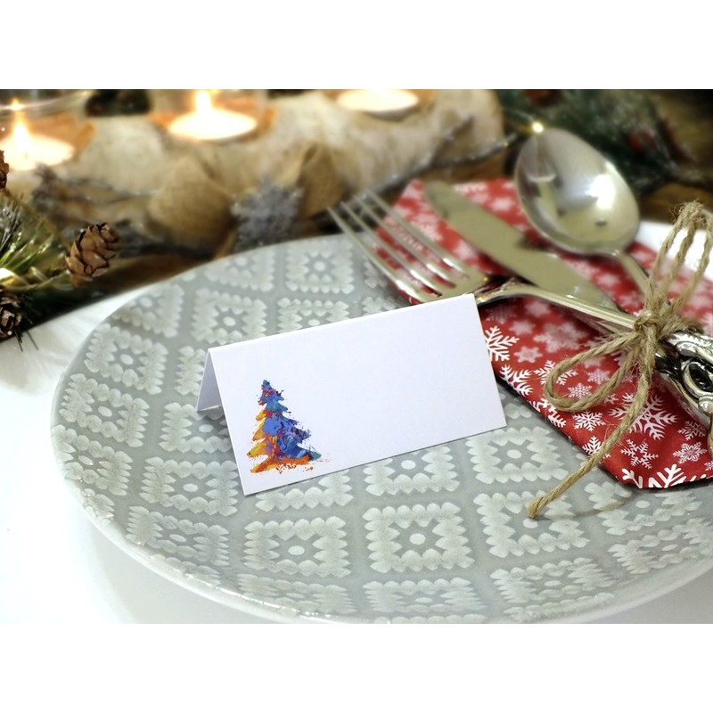 Pack of 12 Christmas Place Cards - Colourful Santa, Snowman & Xmas Tree - Guest Name Card