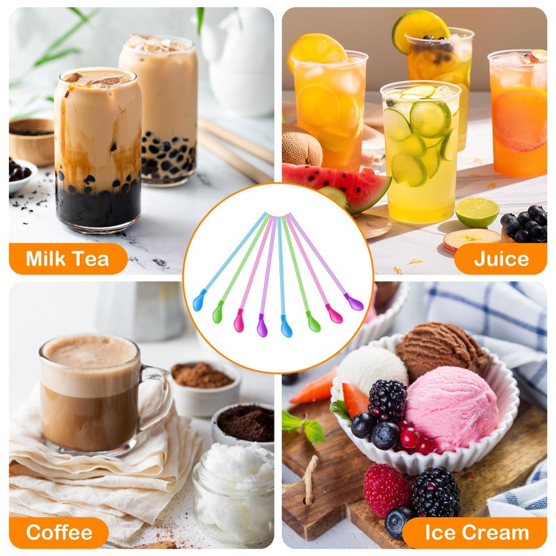 - 2-in-1 straw spoon: Our plastic straws spoon with 2-in-1 design can be used not only for spooning solid food, but also for sucking liquid drinks with a straw. It is easy to use and can be used for smoothie, milkshake, cocktails and hot drinks, etc
