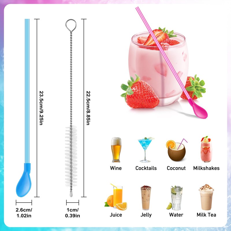 - Easy to clean and reusable: the straw spoon set contains 2 straw brushes that can easily clean the straws with spoons without leaving any residue. The reusable straw spoons are not easy to break or rust, hygienic, dimensionally stable and virtually indestructible."