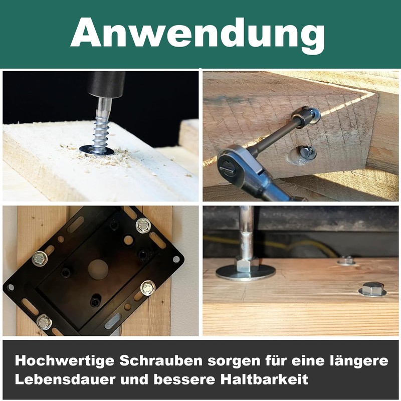 - Easy to install: the head of the wood screws adopts a design of the outer hexagon, you only need to use the socket wrench included in our package and stainless steel washers, the M8 hex screws can be installed and removed, which also reduces the risk of stripping when using