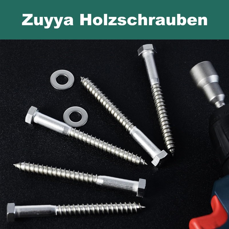 The head of the stainless steel wood screws adopts a design of the outer hexagon, you only need to use the socket wrench included in our package, the hexagonal screws can be installed and removed. To make it easier to screw in the screw, we recommend pre-drilling before use. Pay attention to safety when using.