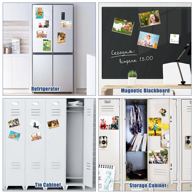 - WIDE USES Magnetic picture frame is extremely versatile and perfect to show off your memories. Magnetic photo frames can be used in kitchen refrigerators, metal boards, school and classrooms, magnetic chalkboards, etc. - perfect to show your unforgettable moments and protect your photos from yellowing.