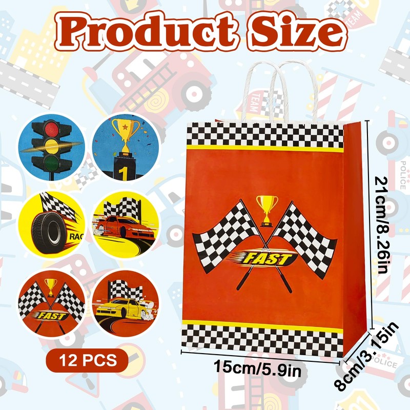 Pack of 12 Monster Truck Party Gift Bags with Handle, Children's Party Candy Bags, Colourful Gift Bag, Party Bags, Candy Bags for Filling with Toy Party Bags, Children's Birthday Easter Party
