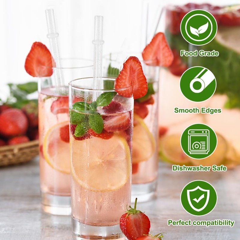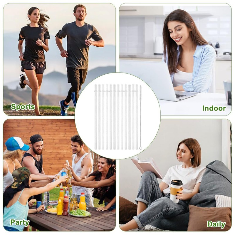 - Package contents: you will receive 12 x clear straws with cleaning brush and 1 x cleaning brush. Clear straws with straw brush with transparent base colour and fine silver powder on it, looks fresh and shiny, can add a delicate feeling to your drinks, now replacement straws are in sufficient quantity, it is convenient for you to change and wash them in time