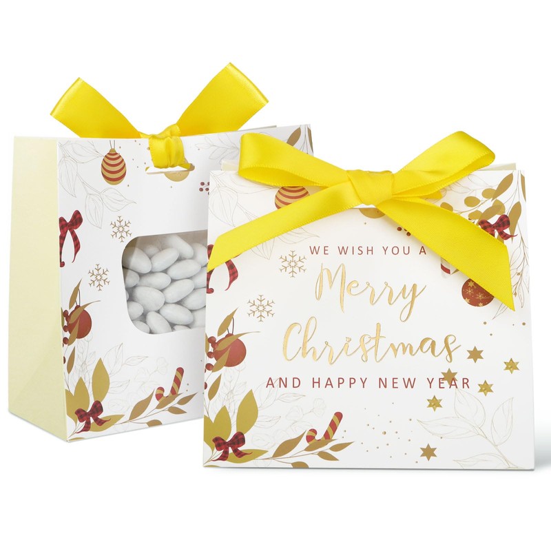 Pack of 12 Small Christmas Gift Bags with Silk Ribbons 13 x 11.5 x 5.5 cm Merry Christmas Gift Bags Gift Bags for New Year's Eve Birthday Celebration Party New Year Gift (White)