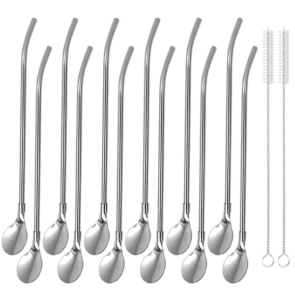 - Straw spoon set: you will receive 12 straws with spoon, silver, 2 straw cleaning brushes. Straws spoons are approx. 21 cm / 8.27 inches long and 6 mm / 0.24 inches in diameter.