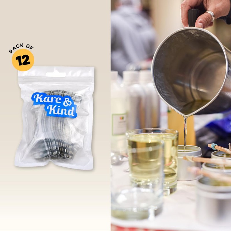 Kare & Kind Metal Candle Wick Centering Device - 12 pack The wick setter will allow your candle wicks to stay in place making your homemade candle making process easier. It is a perfect choice for beginners and experienced candlemakers. Great gift for candle lovers and DIY enthusiasts. These candle wick holders is a must-have for candle making. They can fit on top of a variety of candle jars and work with all types of molds. The advantage of these wick holders are the 3 options to use for positioning the wick making it easy to use up to three wicks in one candle. There are 12 pcs of metal candle centering tool in this set. Candle wicks or candles are not included. Contents: - 12x Candle Wick Centering Devices - 1x Kare & Kind Cleaning Cloth