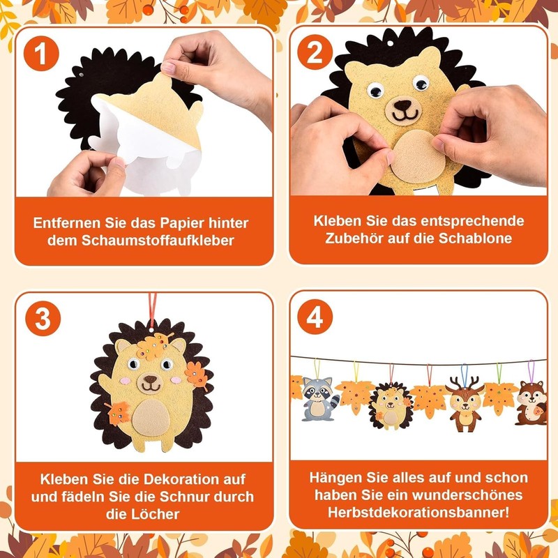- With the felt craft set autumn made of soft EVA material, a safe and durable craft experience is possible.