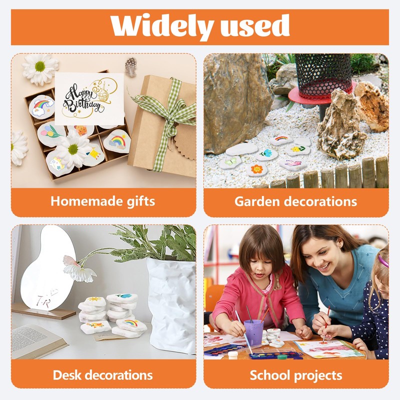 - Ideal gift: the flat stones for painting set is not only an ideal gift for children who like to create their own artwork, but also an ideal gift for adults. It is a great way to ignite the passion for art and creative projects and is a great gift for birthday, Christmas, New Year, Thanksgiving and other occasions.