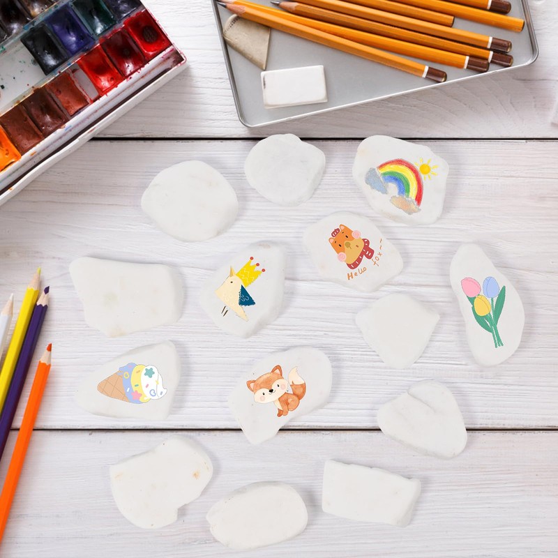 - Practical accessories: we supply you with 14 natural painting stones in sizes 3 to 8 cm, stones for painting flat for painting and decoration work. The uniform white color and flat shapes provide the perfect white background for your artistic creations.