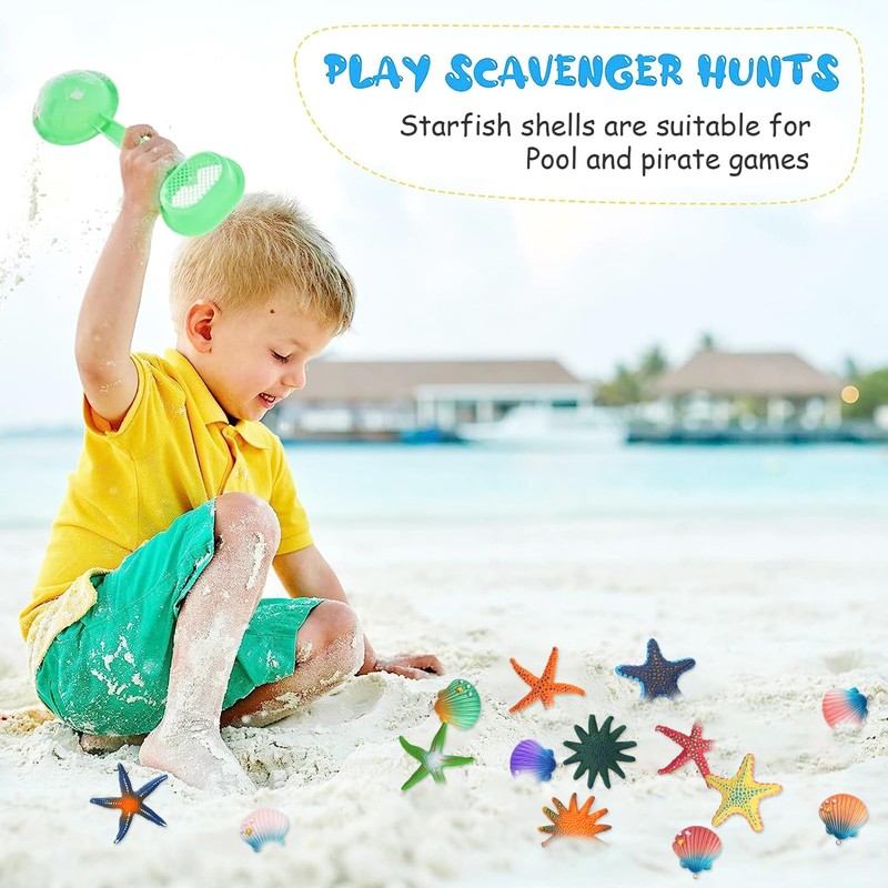 - The perfect beach toy: you will receive 14 pieces of sea creatures, including 8 small starfish and 6 small shells. They are colourful and perfect for children to play on the beach during the summer.