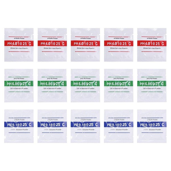 - Includes: pH 4.00 buffer powder x 5 pieces + pH 6.86 buffer powder x 5 pieces + pH 9.18 buffer powder x 5 pieces