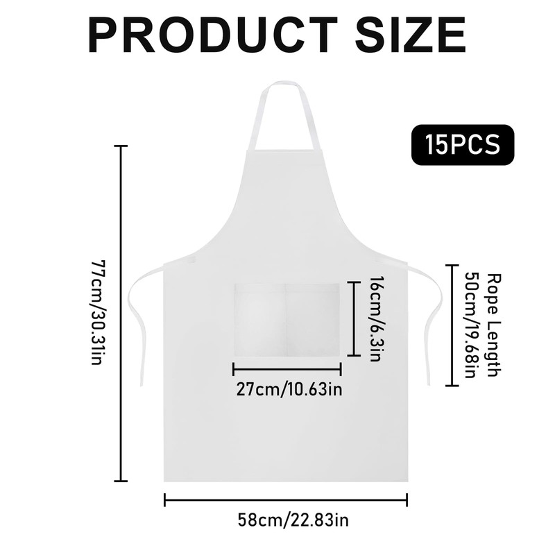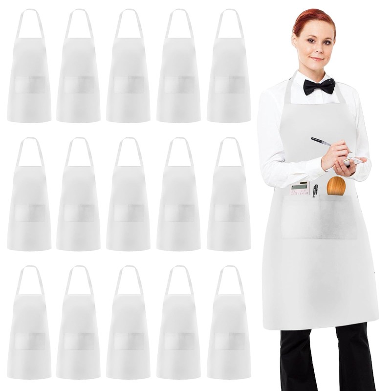 Pack of 15 Cooking Aprons, Adjustable Baking Apron with 2 Pockets, Unisex Chefs Apron, Blank DIY Children's Chef Neckband Apron for Cooking, Baking, Kitchen, Restaurant, Crafts, Cafe