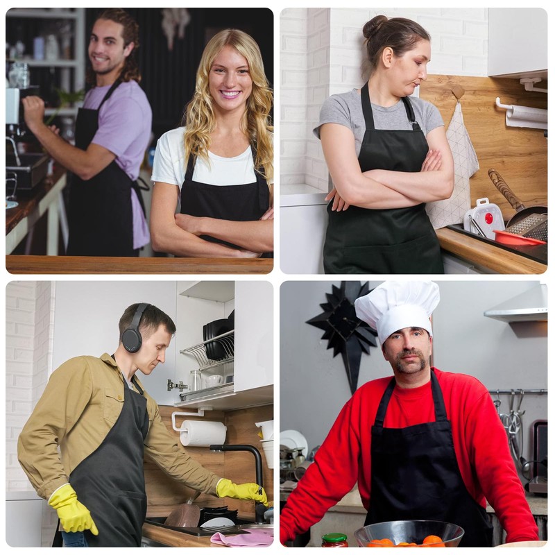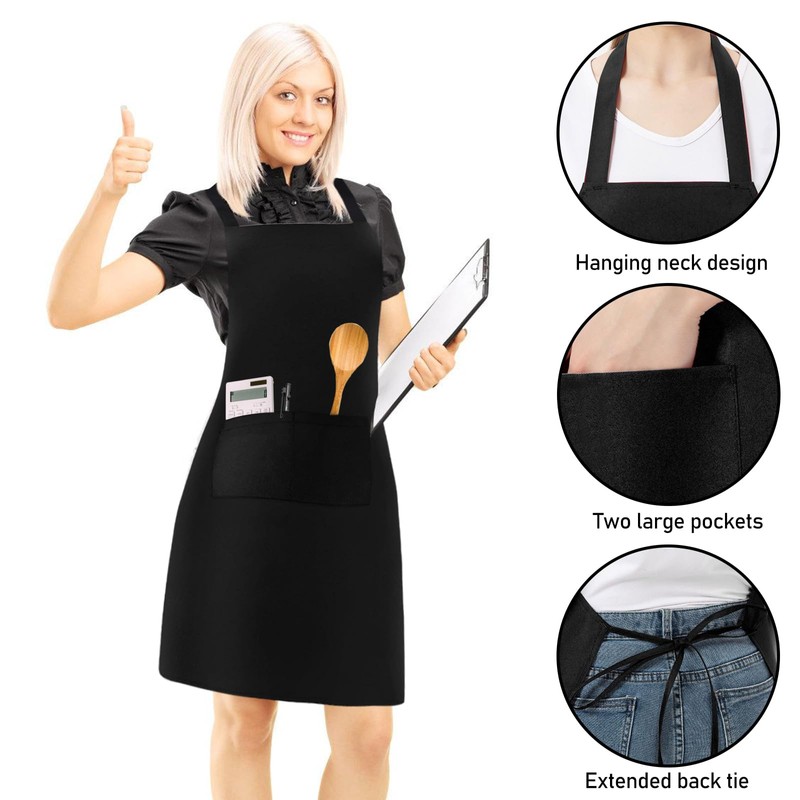 - WIDE RANGE OF USES Whether in the kitchen, restaurant, barbecue, painting or gardening, these cooking aprons are ideal for any application. Thanks to the simple black design, black aprons are also great for DIY design and are a perfect gift for family, friends or colleagues