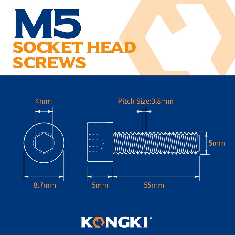 - Box contents: M5 x 55 mm (15 pieces) / thread diameter: 5 mm; pitch size: 0.8 mm / drive type: hexagon socket
