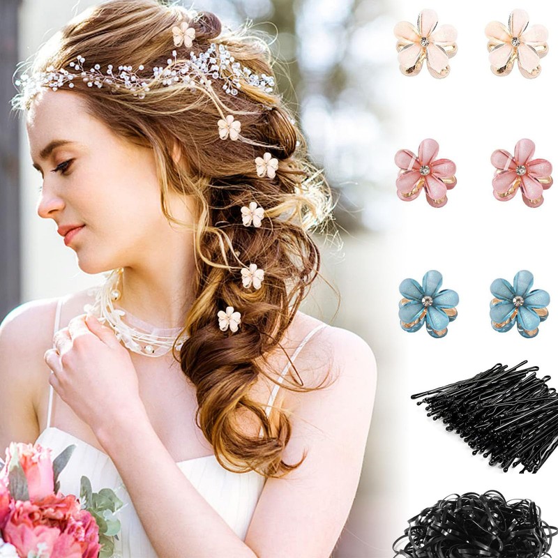 - Package includes: you will receive 15 small claw clips with floral patterns, 3 colours, 5 pieces each. The quantity and color are enough to meet your daily use and replacement. Each pearl hair clip is about 2 cm, small accessories make you look beautiful and charming. Comes with 50 elastic mini hair ties and 50 metal hair grip clips.