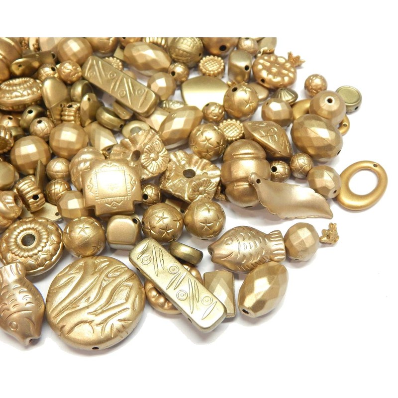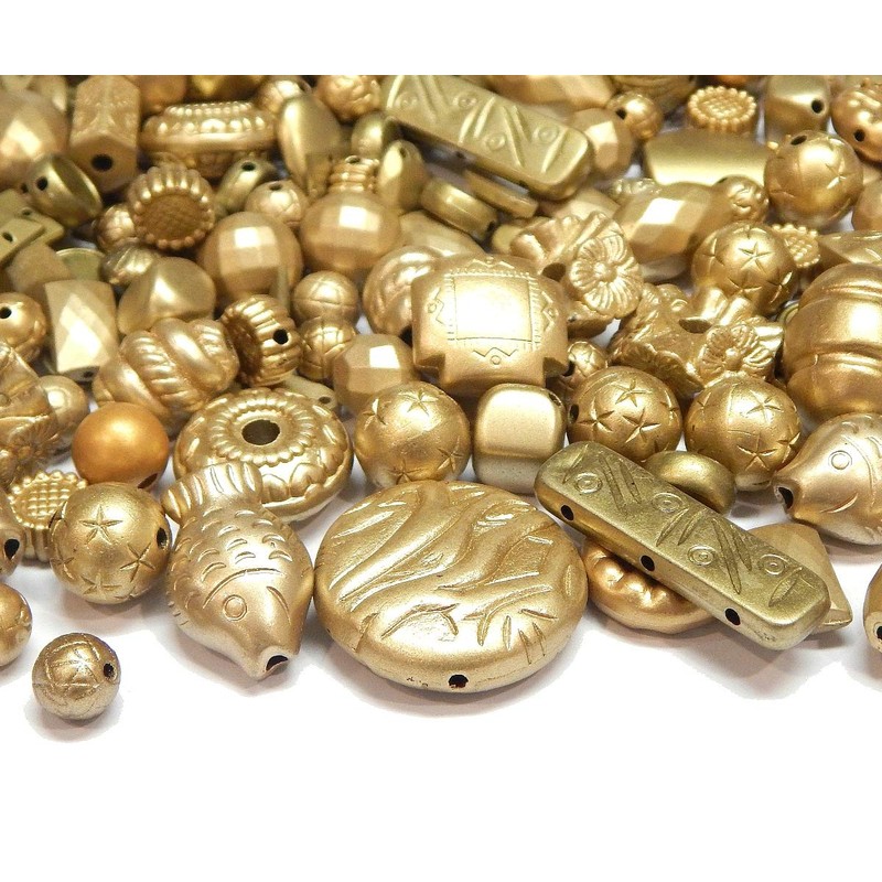 - Approx. Pack of 150 luxury plastic beads / matt metallic gold colour plastic beads